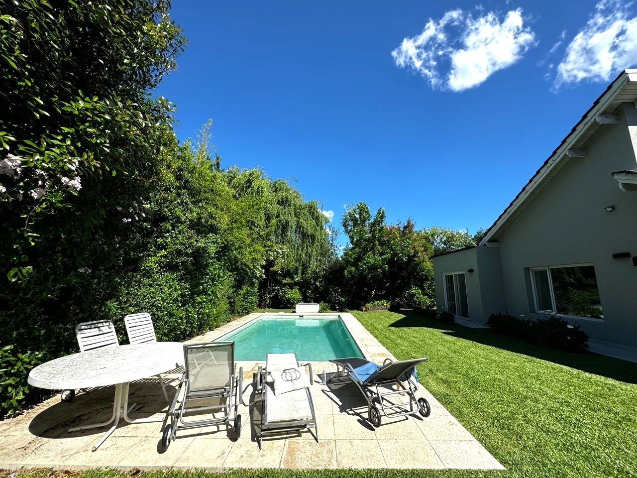 ALQUILER ANUAL AMOBLADO CASA 3 DORMITORIOS MAS PLAYROOM (o 4to dormitorio) EN EL CLUB NEWMAN, BENAVIDEZ. TODO RECIEN RECICLADO A NUEVO! LOS 3 DORMITORIOS EN PLANTA BAJA y EL PLAYROOM O 4TO DORMITORIO, ADEMAS DE ESCRITORIO ABIERTO, EN 1er PISO. 3 BAÑOS COMPLETOS 1 TOILETTE 200 MTS CUBIERTOS 703 MTS2 DE LOTE TOTALMENTE PARQUIZADO, ARBOLES FRUTALES Y HUERTA SECTOR LA ISLA: TOTAL SILENCIO Y TRANQUILIDAD! EXCELENTE CASA RECIEN REMODELADA EN 1 SOLA PLANTA. PILETA CON SOLARIUM REFRACTARIO ORIENTACION NORESTE. TODO SOL ! PLANTA BAJA: - ENORME LIVING - COMEDOR CON SALIDA A LA GALERIA TECHADA. - PARRILLA CON TAPA EN UN EXTREMO DE LA GALERIA Y MESA PARA 12 PERSONAS. - GALERIA CON 3 PAÑOS DE TOLDOS REBATIBLES Y 2 VENTILADORES DE TECHO. - TOILETTE DE RECEPCION - 2 DORMITORIOS JUNIORS EN SUITE CON CAMA DE 2x1 Y CARRITO Q SE SACA DE ABAJO, CON SU BAÑO COMPLETO. - MASTER SUITE CON CAMA DE 2x2, AMPLIO WALKING CLOSET Y BAÑO COMPLETO. - COCINA INDEPENDIENTE EQUIPADA CON LAVAPLATOS ARISTON, MICROONDAS, HORNO WHIRPOOL ELECTRICO EMPOTRADO + HORNITO BHG ELECTRICO - ANAFE CON HORNALLAS A GAS. - LAVADERO INTEGRADO EN LA COCINA CON LAVASECARROPAS SAMSUNG DE 7.5 KGS. - EN GABINETE EXTERIOR HAY UN FREEZER GAFA GRANDE CON TAPA HORIZONTAL + LAVARROPAS DE 13 KGS. - EN EL 1er PISO: - PLAYROOM (o 4to DORMITORIO) CON SILLON CAMA DE 2x1 Y APOYA PIES - ESCRITORIO ABIERTO CON MUEBLE PARA LA COMPUTADORA E IMPRESORA - EXCELENTE CALIDAD CONSTRUCTIVA! - TODOS LOS AMBIENTES TIENEN AIRE ACONDICIONADO SPLIT, INCLUIDA LA COCINA. - Calefacción por radiadores de agua con control remoto de temperatura en la suite principal y toalleros de calefaccion en cada baño. - Ventanas con doble vidrio con cámara de aire aislante para el frío y el calor. - Pisos de porcelanato símil madera gris. La casa esta toda reciclada a nuevo, baños, pisos, cocina, aberturas, todo impecable! Se alquila amoblada por 2 años. El precio publicado es mas gastos. Llamame para ir a verla! 115-878-7746
